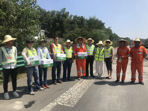 合六葉、六武高速項目業(yè)主單位、監(jiān)管單位以及監(jiān)理單位領(lǐng)導(dǎo)為高速現(xiàn)場施工人員送清涼