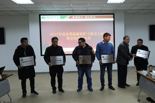 2017年12月14日,2017年度瀝青路面養(yǎng)護(hù)工程交工驗收暨總結(jié)表彰大會在合肥召開,六安市交通公路實業(yè)有限公司2017-2019年度安徽省部分高速公路瀝青路面專項養(yǎng)護(hù)工程03標(biāo)項目經(jīng)理部榮獲2017年度養(yǎng)護(hù)工程”優(yōu)秀項目部“和”安全管理先進(jìn)單位“稱號。